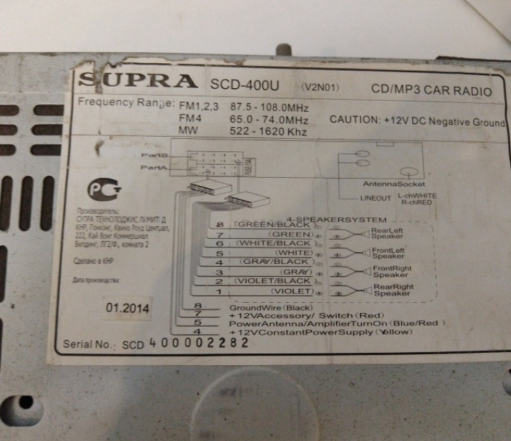 Автомагнитола Supra SCD-400U